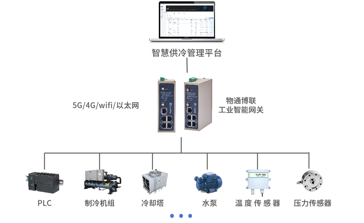 借助物通博联的工业智能网关,实时采集供冷系统中制冷机组、冷却塔、水泵等设备的运行数据,包括温度、压力、流量、功率等。同时,采集室内外环境温度、湿度以及不同区域的冷量需求数据。将采集到的数据传输至智慧供冷管理平台,平台通过数据分析和算法模型,预测不同时间段和区域的冷量需求,优化设备运行参数,实现设备的智能控制。当设备出现异常或可能发生故障时,及时发出预警并提供故障诊断和处理建议。此外,平台还具备能耗成本核算功能,为用户提供详细的能耗报告和成本分析,以便进行成本控制和节能决策。