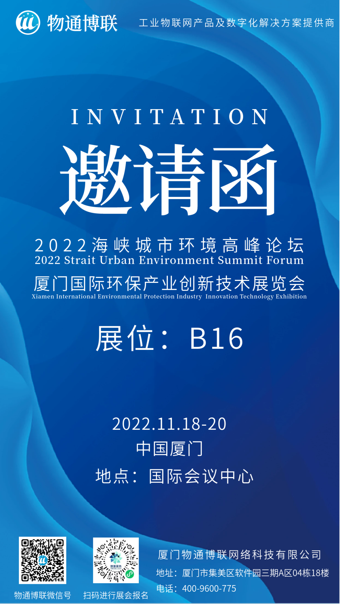 物通博联诚挚邀请您2022年11月18-20日莅临厦门国际会议中心B16展位参观交流。