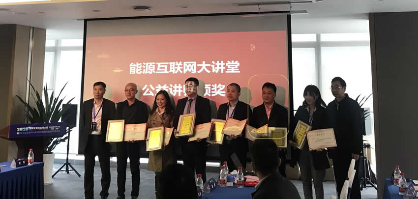 物通博联行业总监上台领取《能源互联网大讲堂》公益讲师荣誉证书和奖牌