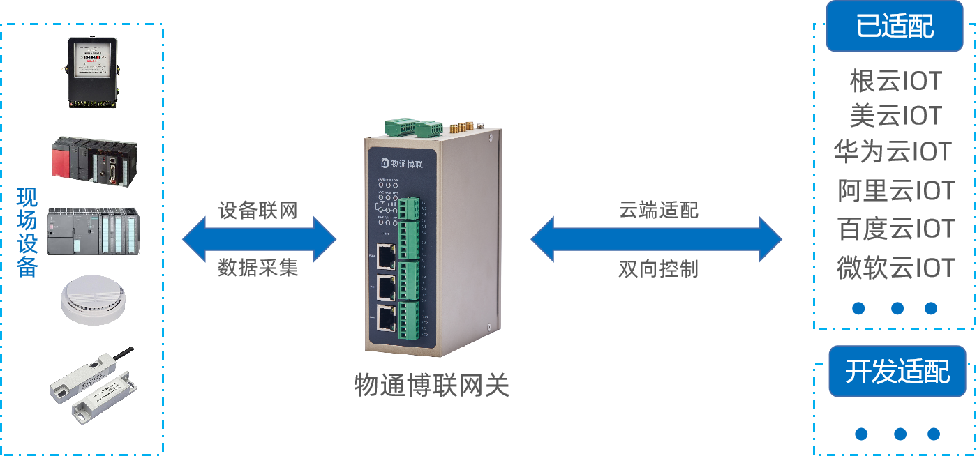 物通博联WG系列工业智能网关支持对接第三方云平台,例如阿里云、华为云、百度云等第三方MQTT物联网设备接入平台,工业智能网关已开发好适配此类第三方平台的物模型接入,一键配置即可接入第三方MQTT物联网云平台。