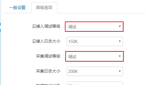 日志设置路径:网关---云服务中心---云接入调试等级与采集调试等级.为了保证网关快速高效采集,调试完毕后请务必将网关采集日志和云接入日志等级调整为信息。