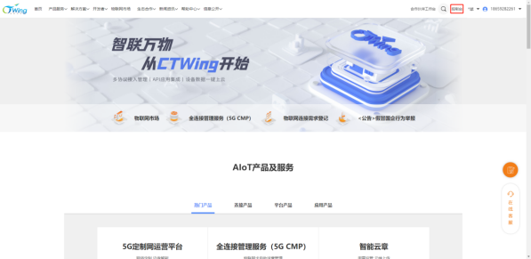 打开https://www.ctwing.cn/(天翼物联网)网页,通过天翼物联网平台账号登录CTWing。