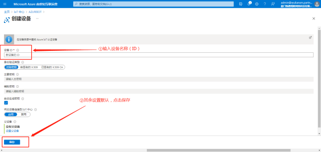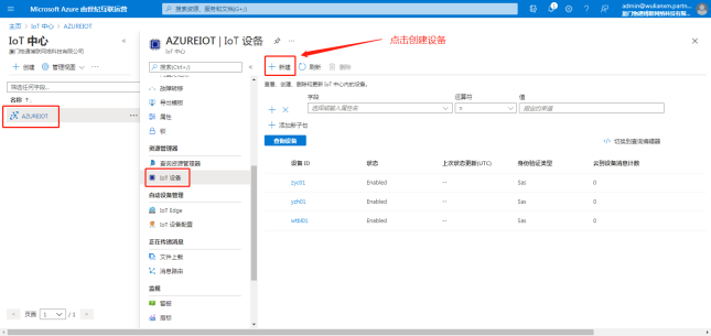 选择IoT设备,点击”新建”,创建一个IoT设备。