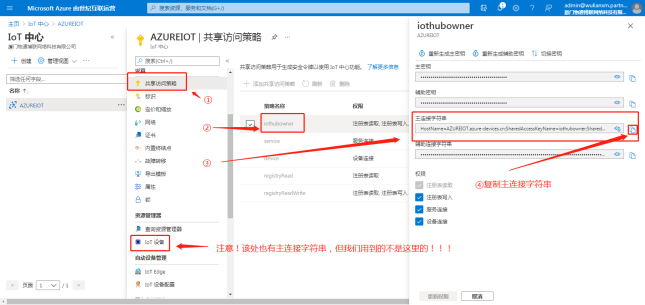 回到web云平台IoT中心页面,通过共享访问策略页面获取连接信息