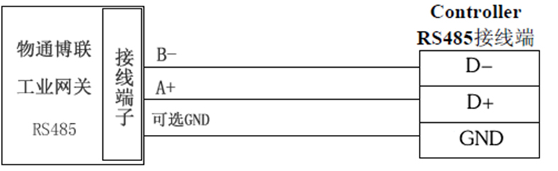 一、串口类型为485的网关接法: