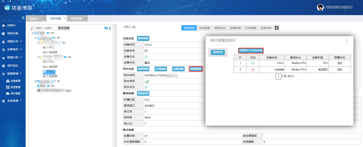 下载中心 视频中心 常见问题 售后服务 工业网关 设备快线 数据云平台 联网设备 问答百科 网关需要将数据上报到物通博联云平台需要哪些配置? 时间:2022-10-26 09:39:53 点击:5696 关键词:工业网关,云平台,数据上报,网关配置 问题:网关需要将数据上报到物通博联云平台需要哪些配置? 回答: (1)确认网关处于联网状态 (2)网关云服务中心里添加物通博联云平台的中心 (3)通过物通博联申请的账号登陆云平台(iot.WideIOT.com) (4)在我的设备目录树上添加设备 (5)填写设备详细参数以及添加网关序列号及所属机型 (6)在添加好的所属机型里面添加咱们需要上传的数据 (7)保存之后点击我的设备—目录树下建好的设备—配置部署 (8)最后建好的设备界面—实时数据查看 上一篇:网关采集modbus协议设备时,寄存器类型和地址如何选择? 下一篇: 工业智能网关串口RS485和RS232的接线方式?
