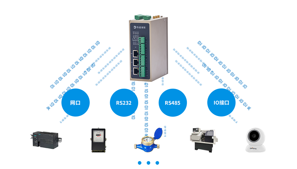 支持多种接口类型,如网口、RS232、RS485、IO接口等,可以连接各种类型的传感器和设备,支持各种PLC、仪器仪表、机床、机器手臂、环保、电力等设备的数据采集