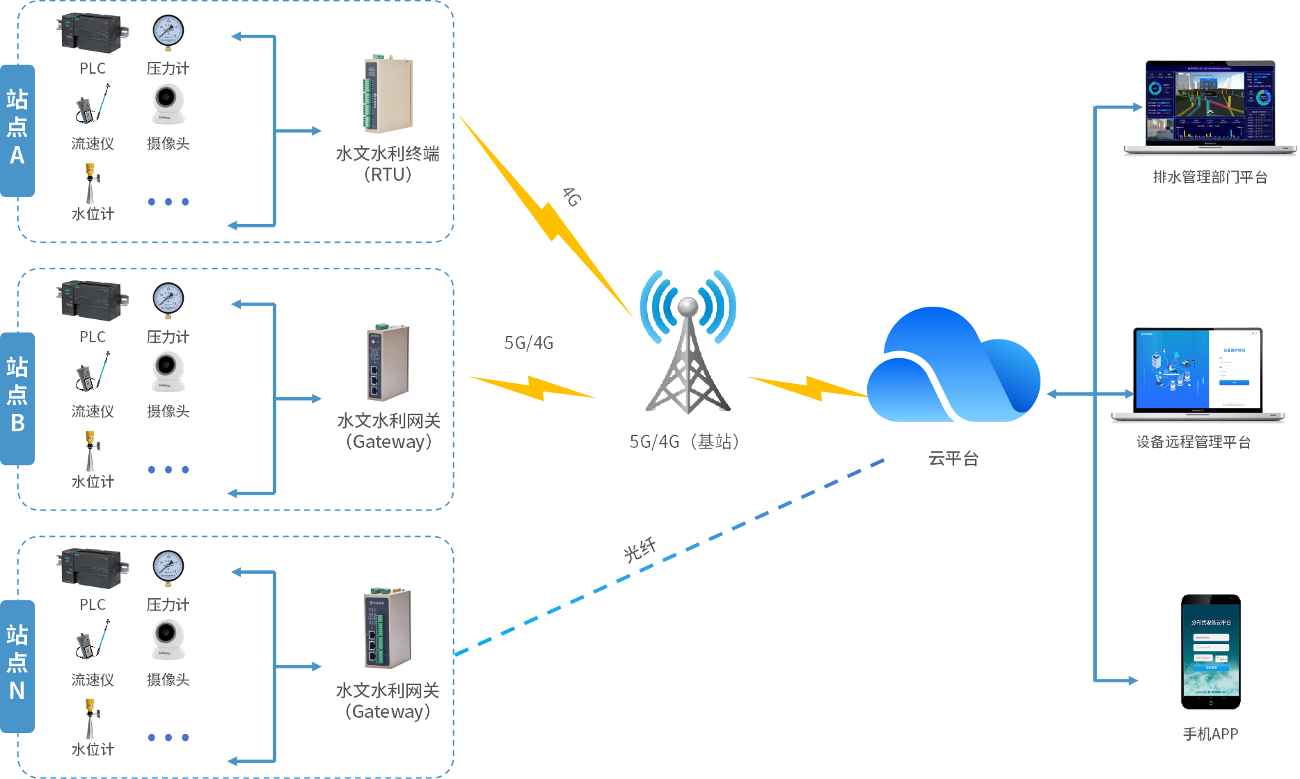 实时监测管网内水位、流量、流速、水压等重要参数,快速配置数据上传周期,实现全天候7*24小时实时监控。