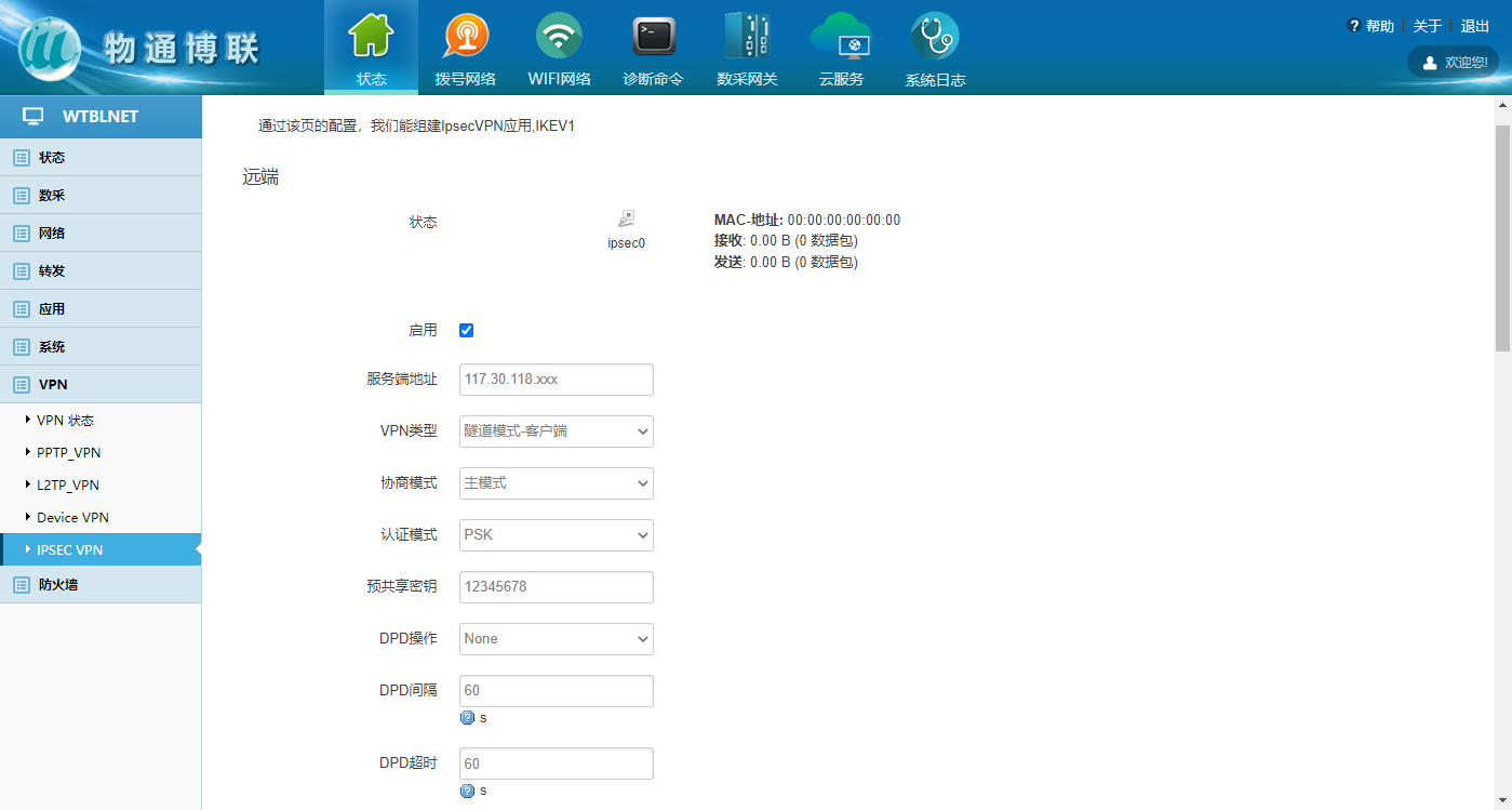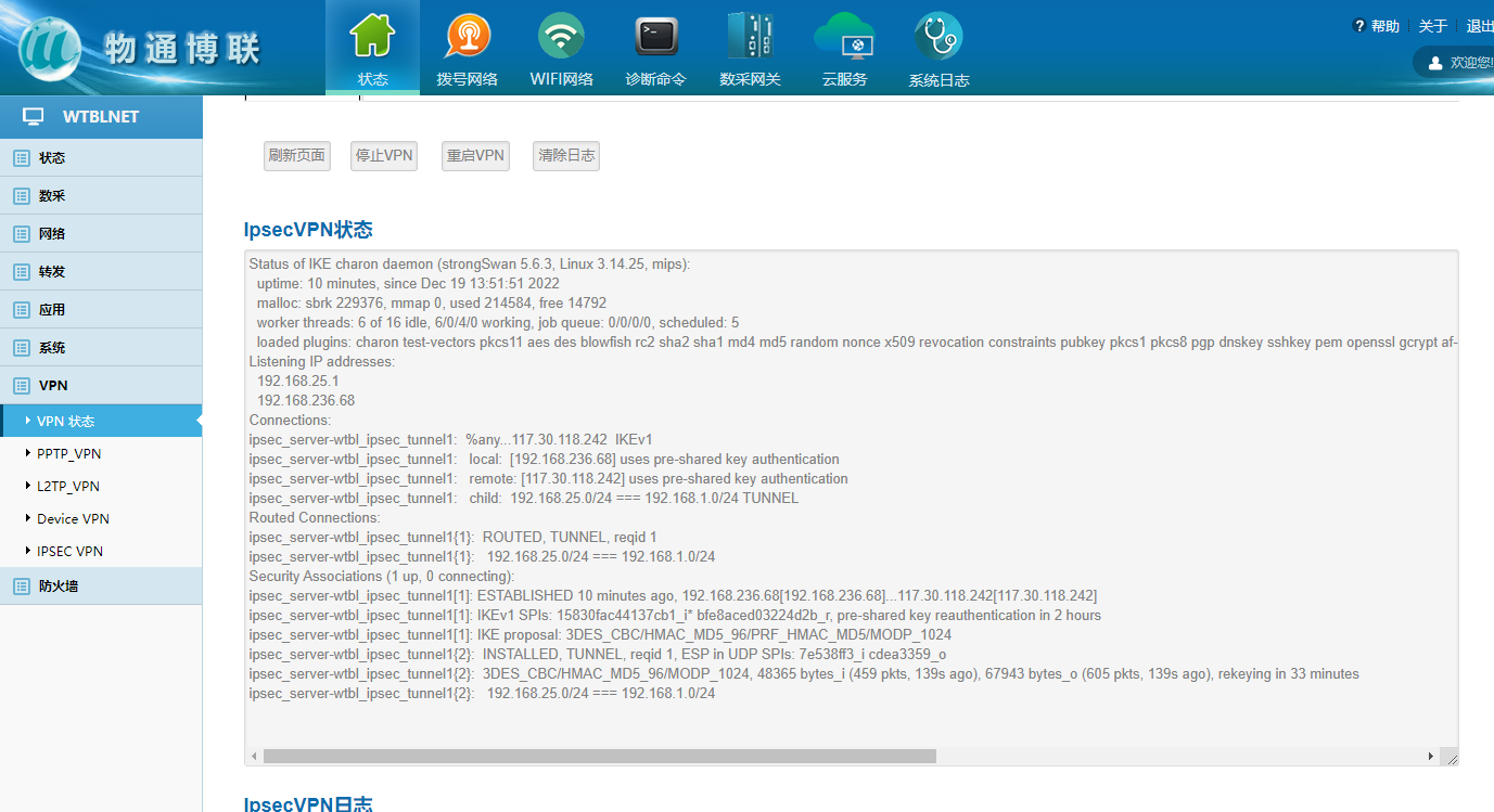 物通博联网关支持IPSEC VPN,帮助企业构建高安全性的数据采集系统