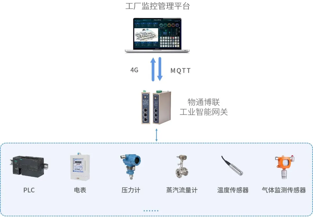 通过实时采集蒸汽流量计、智能电表等数据,能够实时对接到工厂管理平台的能源可视化大屏中,了解设备用电量、累计热量、热交换效率等信息,从而制定合理的能源管理策略与节能目标。